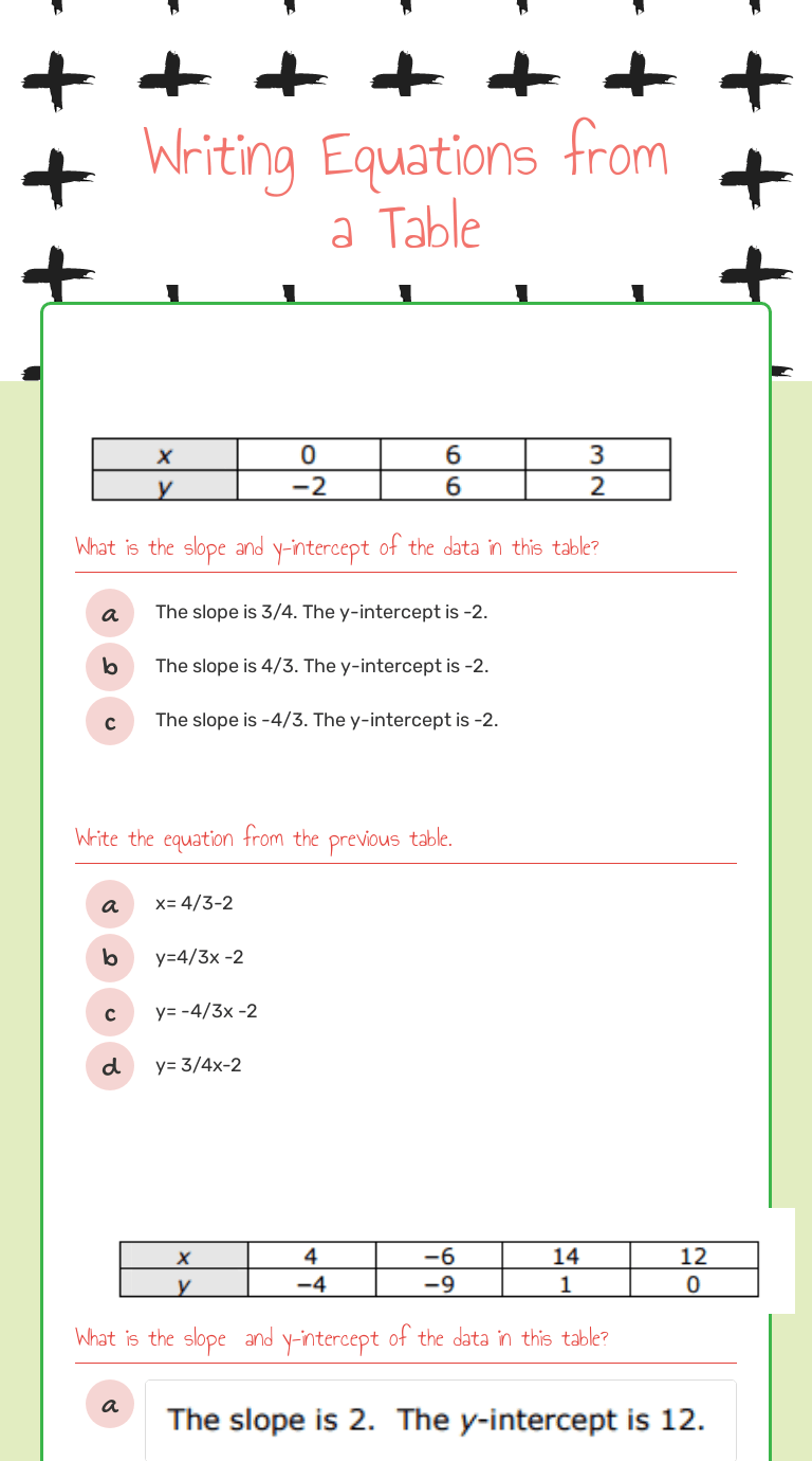 Fast and easy to use; Solution in other types of equations that are not linear, but it is also possible. Writing an equation is generally the first step toward solving or using it. Worksheet by kuta software llc. Writing variable equations from word problems.